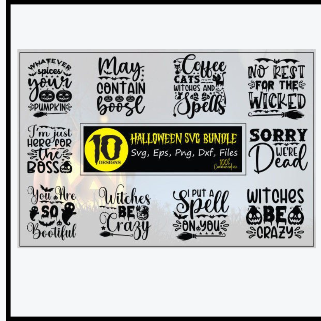 احصل على حزمة Halloween SVG المذهلة التي تضم مجموعة متنوعة من التصميمات الاحترافية والمخيفة المستوحاة من أجواء الهالوين! ????️✨