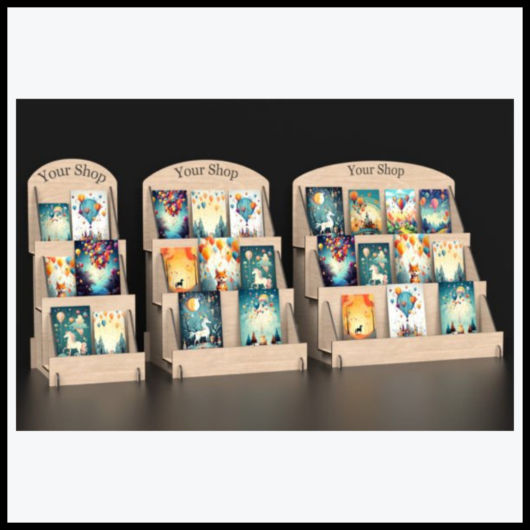 هذا المنتج الرقمي هو تصميم حامل عرض بطاقات الهدايا بتقنية القص بالليزر (SVG)، مثالي لعرض بطاقات الهدايا بطريقة أنيقة ومنظمة.